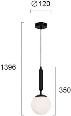 Φωτιστικό Κρεμαστό Μονόφωτο Μέταλλο Μαύρο, Γυαλί Οπαλίνα Οπάλ Ματ Viokef Anouk 4228601