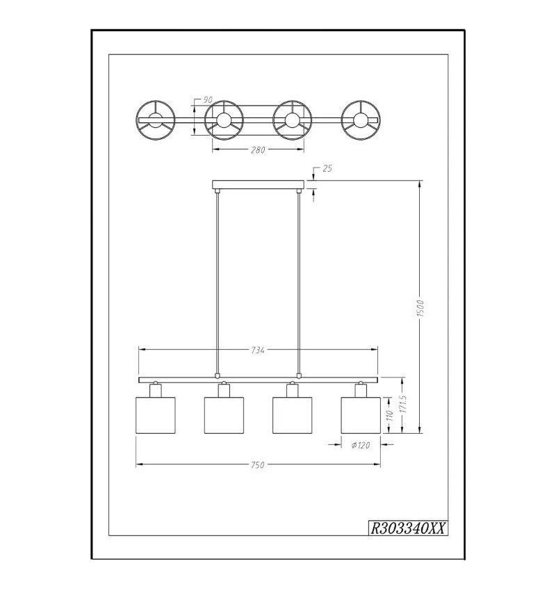 Περιγραφή: Φωτιστικό Κρεμαστό Τετράφωτο