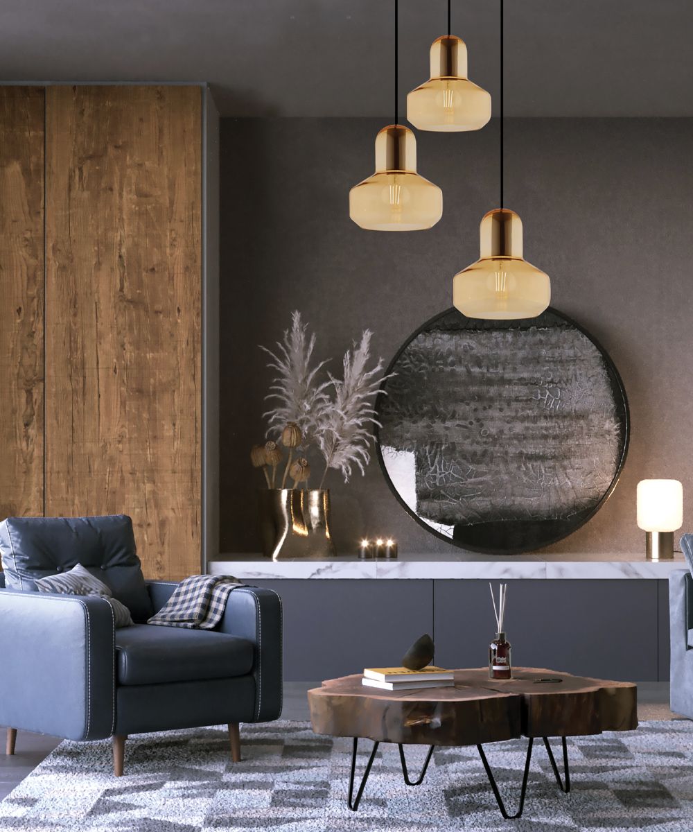 Φωτιστικό Κρεμαστό Τρίφωτο Ράγα 3xE27 L890xH1235mm Γυαλί Μελί-Μαύρο Viokef Mandy 4295900Ειδική Τιμή 113,00 € Κανονική τιμή 140,30 €