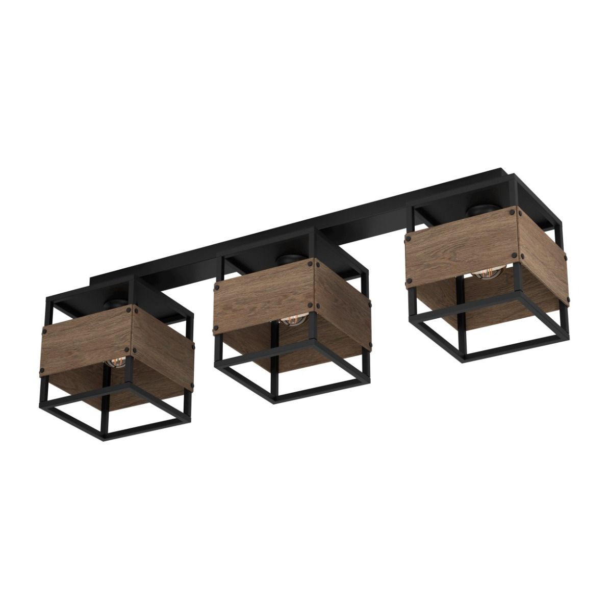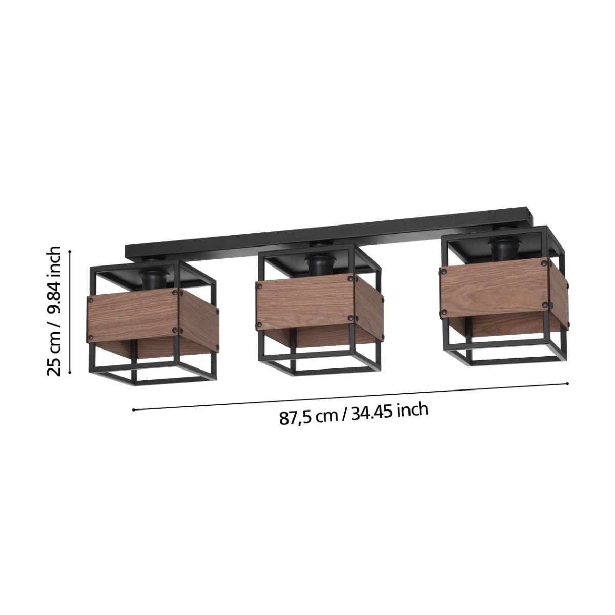 Φωτιστικό Οροφής Ράγα Τρίφωτη L875xH250mm 3xE27 Μέταλλο Μαύρο-Ξύλο Eglo Evesham 43804