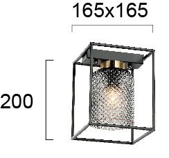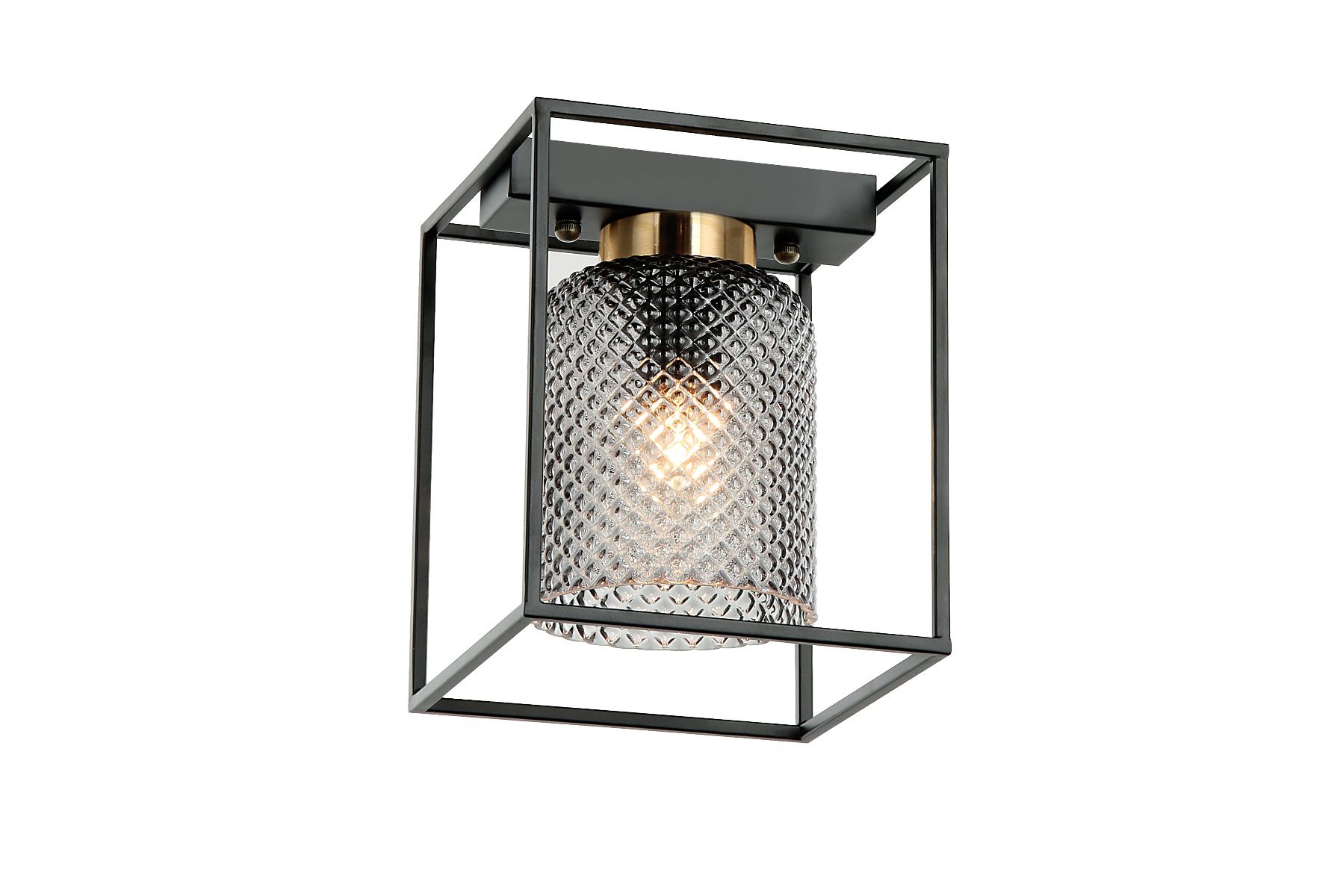 Φωτιστικό Πλαφόν Οροφής 16,5x16,5 εκ.1xE27 Μέταλλο Μαύρο-Φυμέ Ταγιέ Γυαλί & Χρυσή Λεπτομέρεια Viokef Zac 4246900