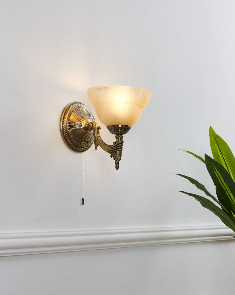 Φωτιστικό Τοίχου 17xH20cm 1xE14 Χυτό Μέταλλο -Γυαλί Αλάβαστρος Σαμπανιζέ Eglo Marbella 85859