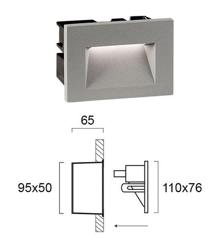 Φωτιστικό Χωνευτό Τοίχου3w 3000K 90lm W110xH76mm Grey Theta Viokef 4198800