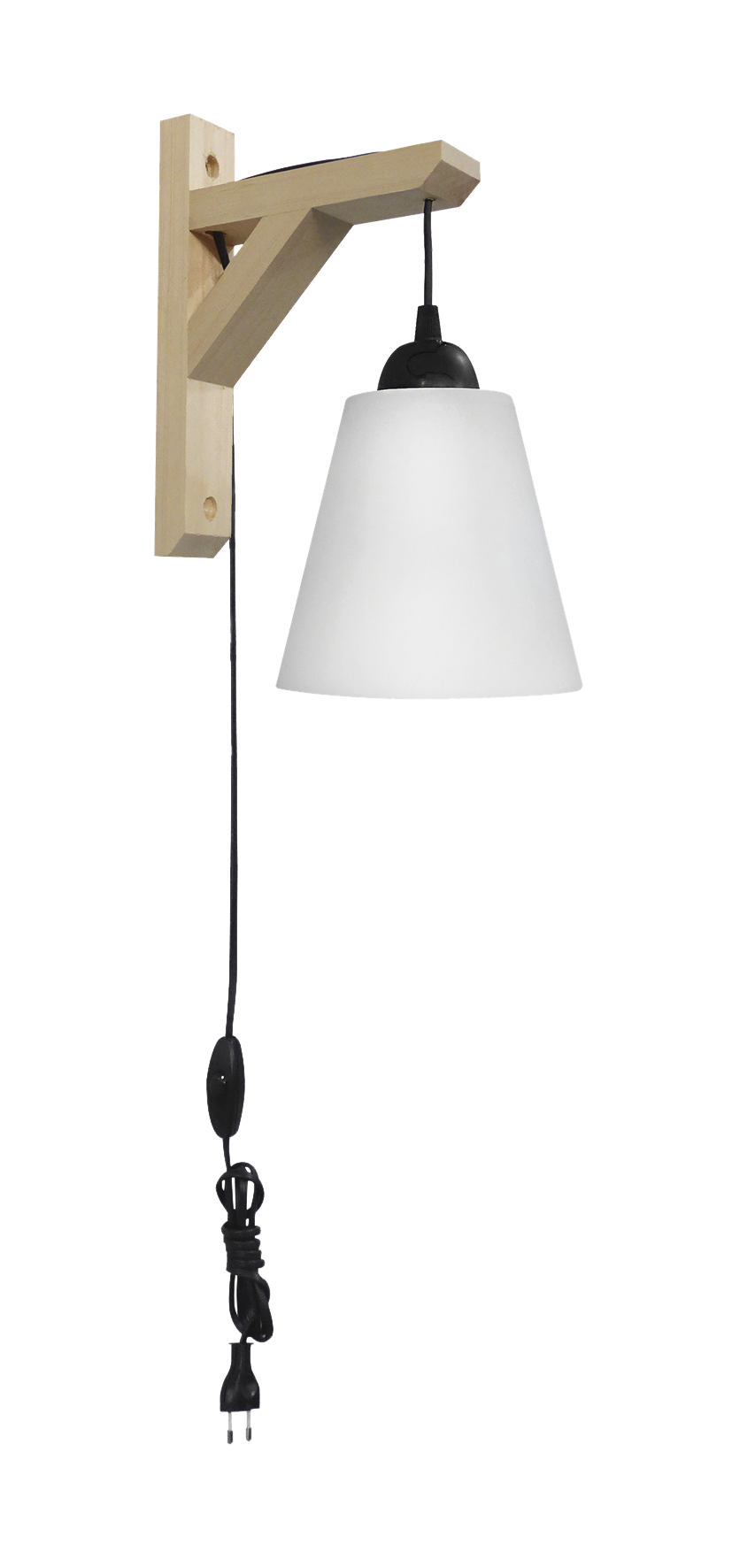 Φωτιστικό τοίχου / απλίκα ξύλινη σε φυσικό χρώμα με καλώδιο μαύρο ,κώνος πλαστικός λευκός & διακόπτη για πρίζα FUN-01AP FIS BL-WH