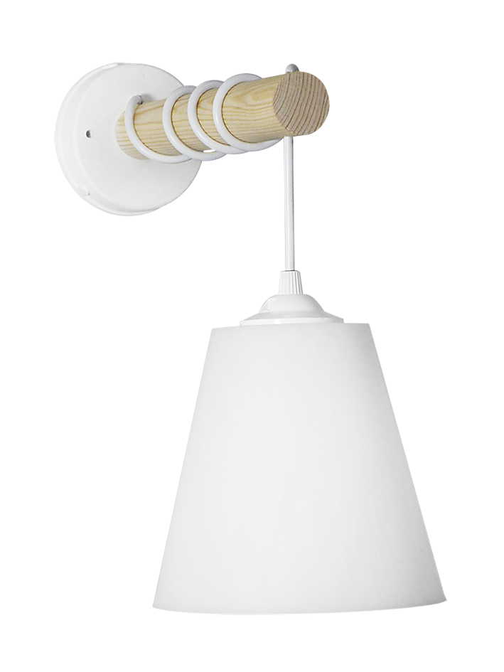 Φωτιστικό τοίχου / απλίκα ξύλινη με καλώδιο λευκό & καπέλο λευκό πλαστικό