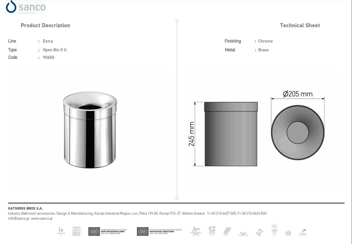 Χαρτοδοχείο Ανοιχτό 5lt Χρωμέ Sanco Brass Chrome Open Bins 90660-A03Ειδική Τιμή 54,00 € Κανονική τιμή 60,00 € -