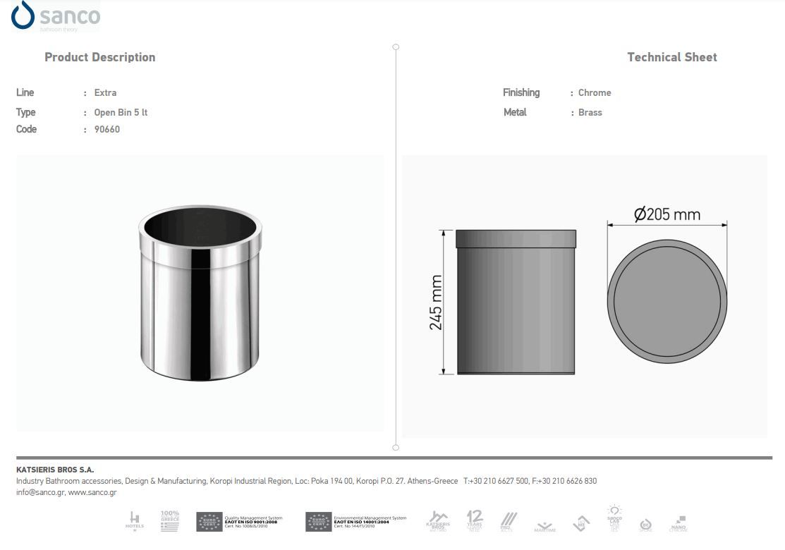 Χαρτοδοχείο Ανοιχτό 5lt Χρωμέ Sanco Brass Chrome Open Bins 90660-A03Ειδική Τιμή 54,00 € Κανονική τιμή 60,00 € -