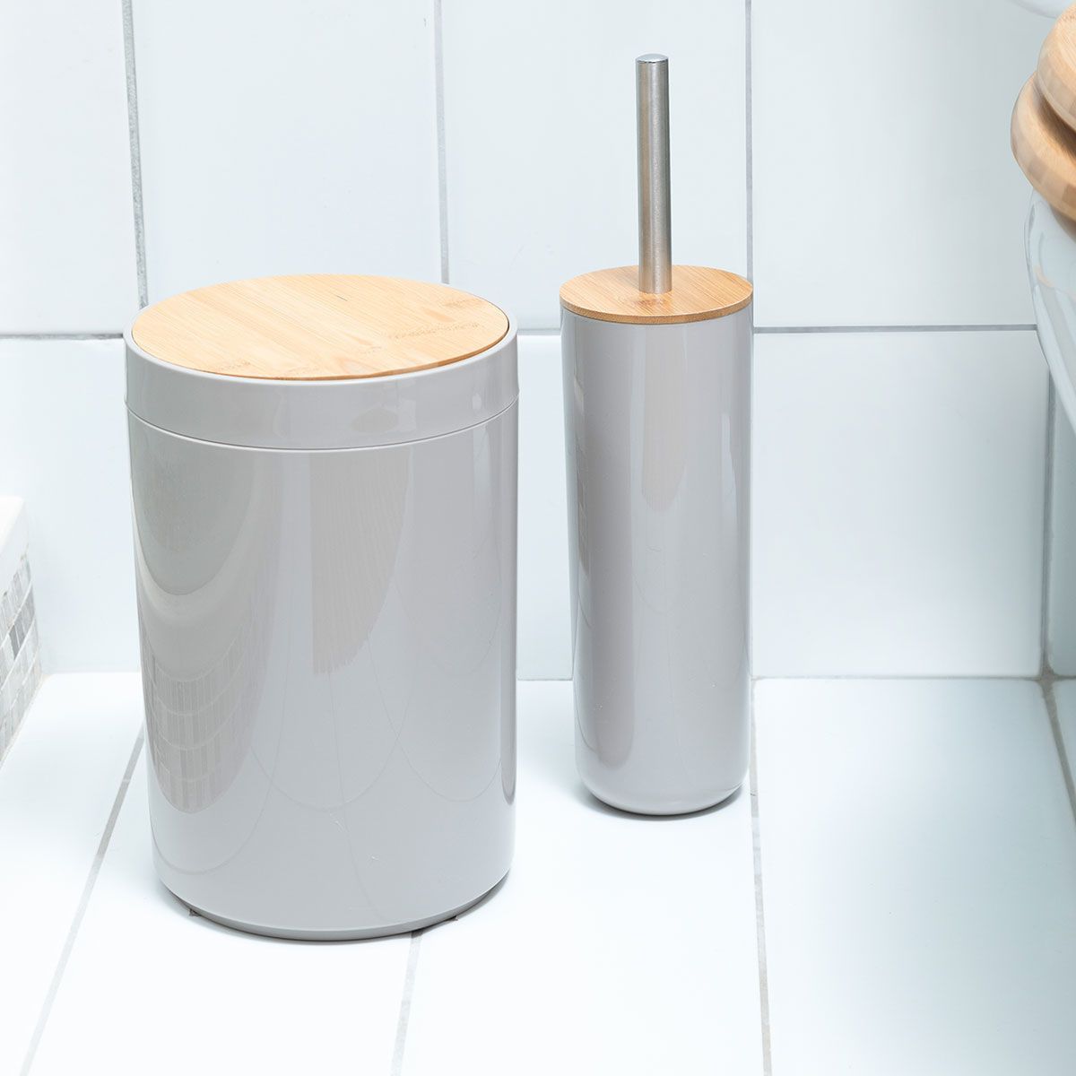 Χαρτοδοχείο 5lt Ø18 cm Πλαστικό Λευκό Γυαλιστερό με καπάκι παλλόμενο Bamboo Estia Home Art 02-3869