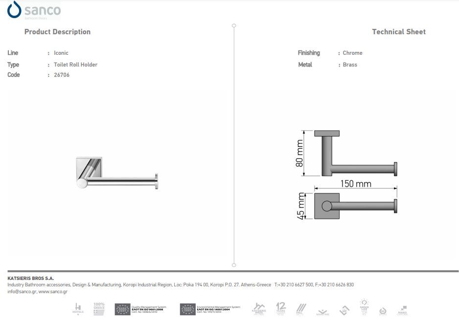 Χαρτοθήκη Κάθετης Στήριξης Sanco Iconic Brushed Nikel 26756-A73Ειδική Τιμή 54,00 € Κανονική τιμή 60,00 €