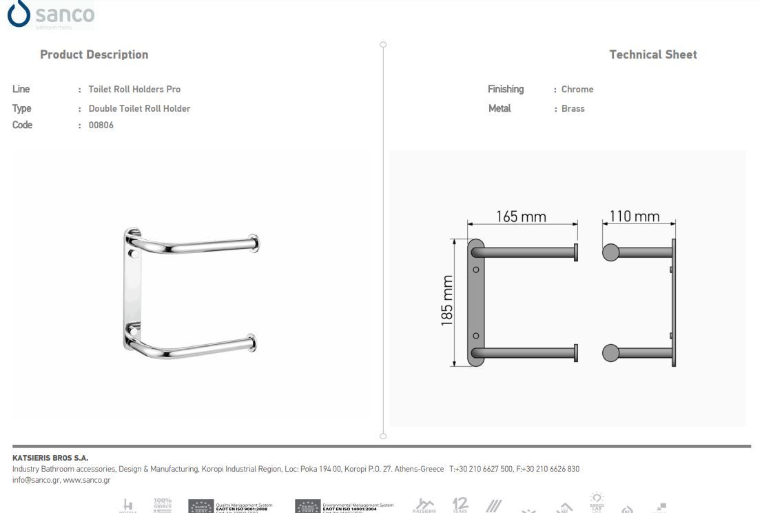 Χαρτοθήκη Διπλή Ανοιχτή Χρωμέ Toilet Roll Holders Pro Sanco 0806-A03Ειδική Τιμή 54,00 € Κανονική τιμή 60,00 € -