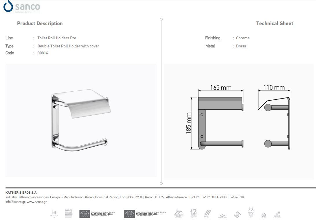 Χαρτοθήκη Χρωμέ Διπλή με καπάκι Sanco Toilet Roll Holders Pro 0816-A03Ειδική Τιμή 81,00 € Κανονική τιμή 90,00 € -