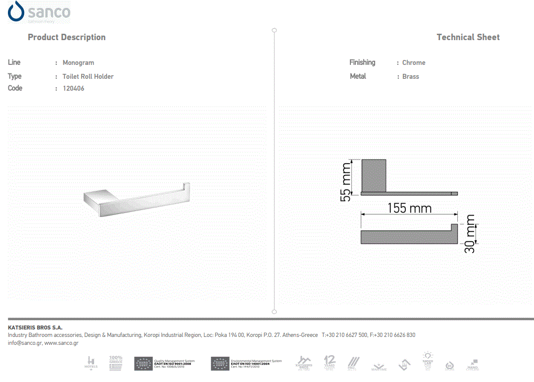 Χαρτοθήκη Επιτοίχια Black Mat Sanco Monogram 120406-M116