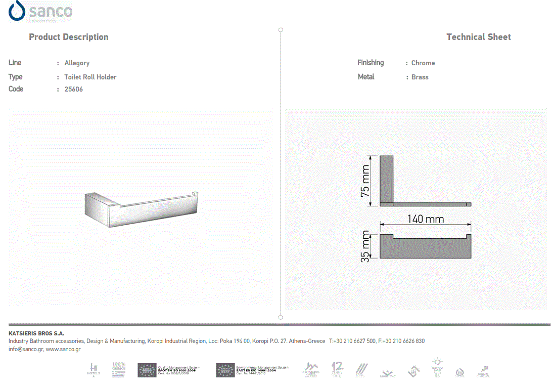 Χαρτοθήκη Επιτοίχια Brushed Brass-Black Mat Sanco Allegory 25606-AB12-M116