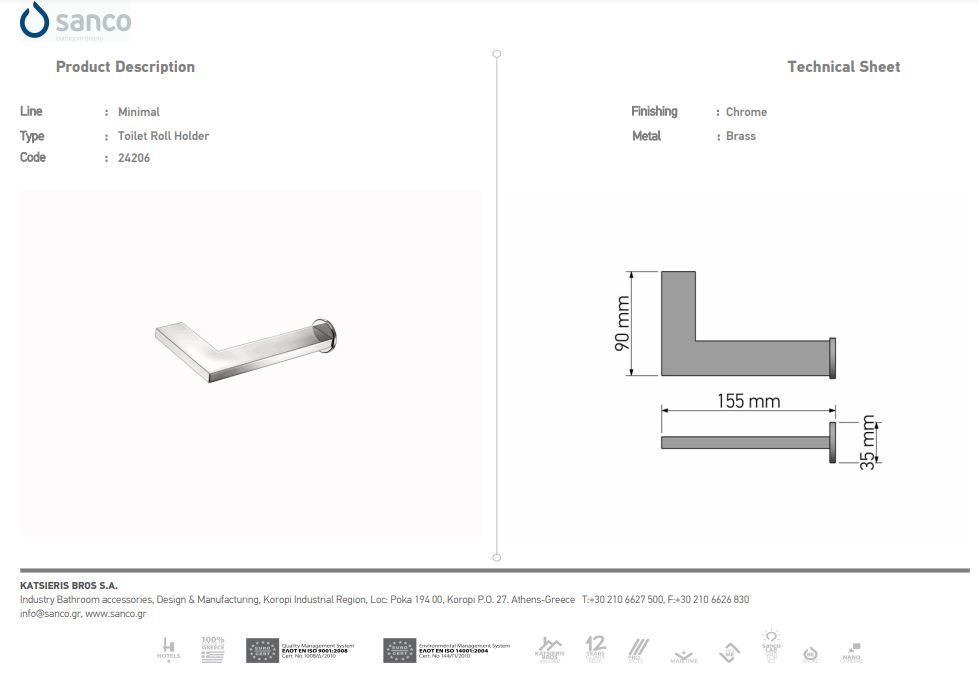 Χαρτοθήκη Επιτοίχια Sanco Minimal Black Mat 24206-M116