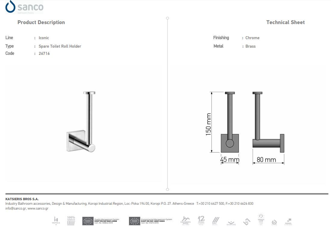 Χαρτοθήκη Εφεδρική Sanco Iconic Chrome 26716-A03Ειδική Τιμή 31,50 € Κανονική τιμή 35,00 €