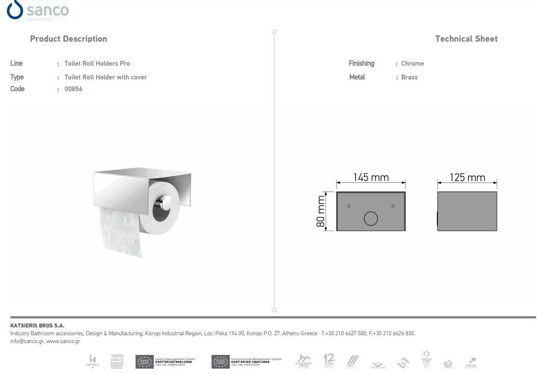 Χαρτοθήκη με Καπάκι W13xD11xH6 cm Ορείχαλκος Chrome Sanco Toilet Roll Holders Pro 0854-A03Ειδική Τιμή 76,50 € Κανονική τιμή 85,00 € -