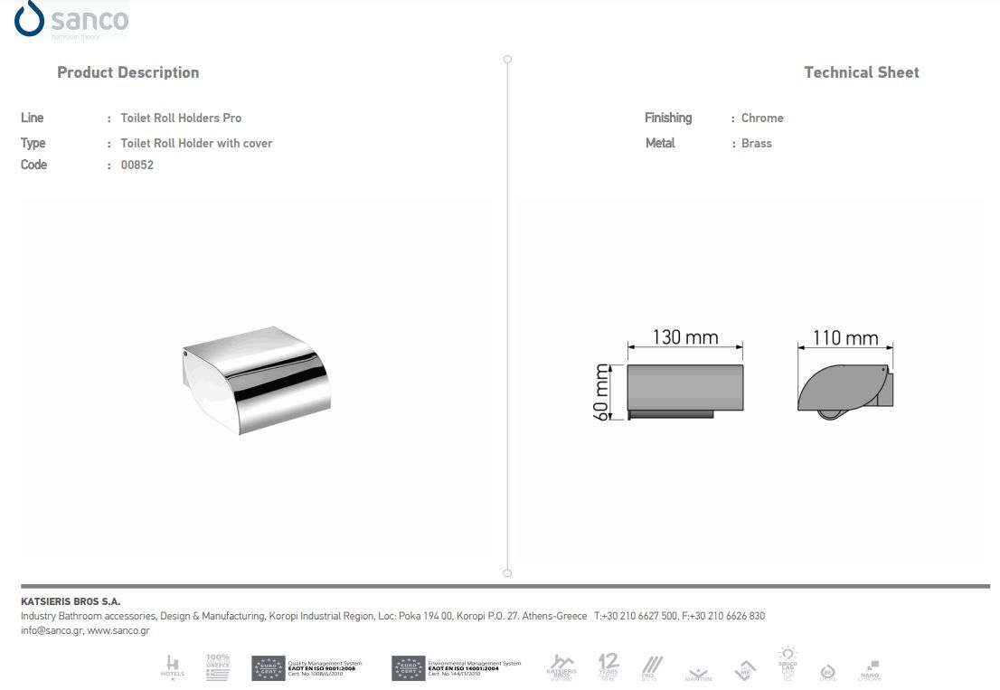 Χαρτοθήκη με Καπάκι W13xD11xH6 cm Ορείχαλκος Chrome Sanco Toilet Roll Holders Pro 0854-A03Ειδική Τιμή 76,50 € Κανονική τιμή 85,00 € -