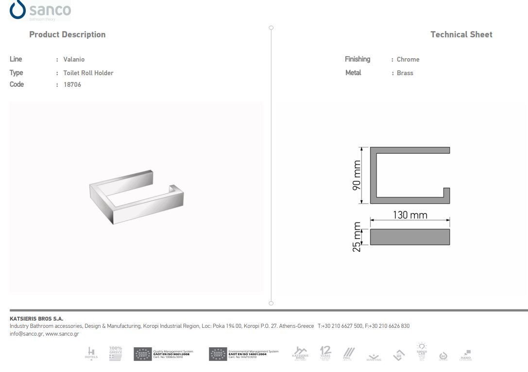 Πετσετοοθήκη Μονή 60 εκ. Sanco Valanio Chrome 18704-M116Ειδική Τιμή 130,50 € Κανονική τιμή 145,00 €