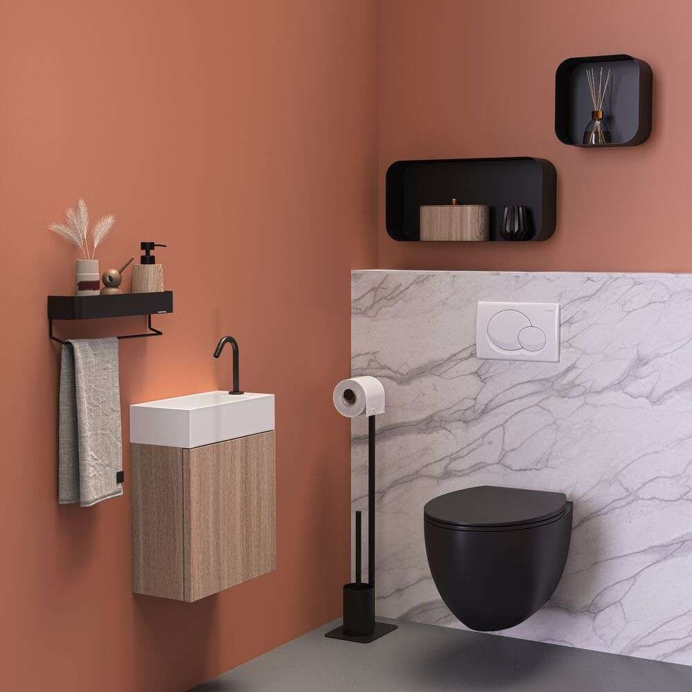 Βάση για ρολό τουαλέτας και πιγκάλ σε ένα. Χάρη στη διπλή του λειτουργία, αυτό το εργαλείο τουαλέτας από τη σειρά Brix είναι ιδανικό για μικρότερους χώρους. Το μαύρο χρώμα συνδυάζεται εύκολα με κάθε εσωτερικό στυλ, προσθέτει μια έντονη πινελιά και, όπως και το λευκό, είναι διαχρονικό. Συνδυάστε αυτόν τον συνδυασμό 2 σε 1 με άλλα αντικείμενα από τη σειρά Brix. Είτε επιλέγετε τη λειτουργικότητα είτε τις τελευταίες τάσεις, στη Sealskin, σας παρέχονται όλες οι σύγχρονες ανέσεις.