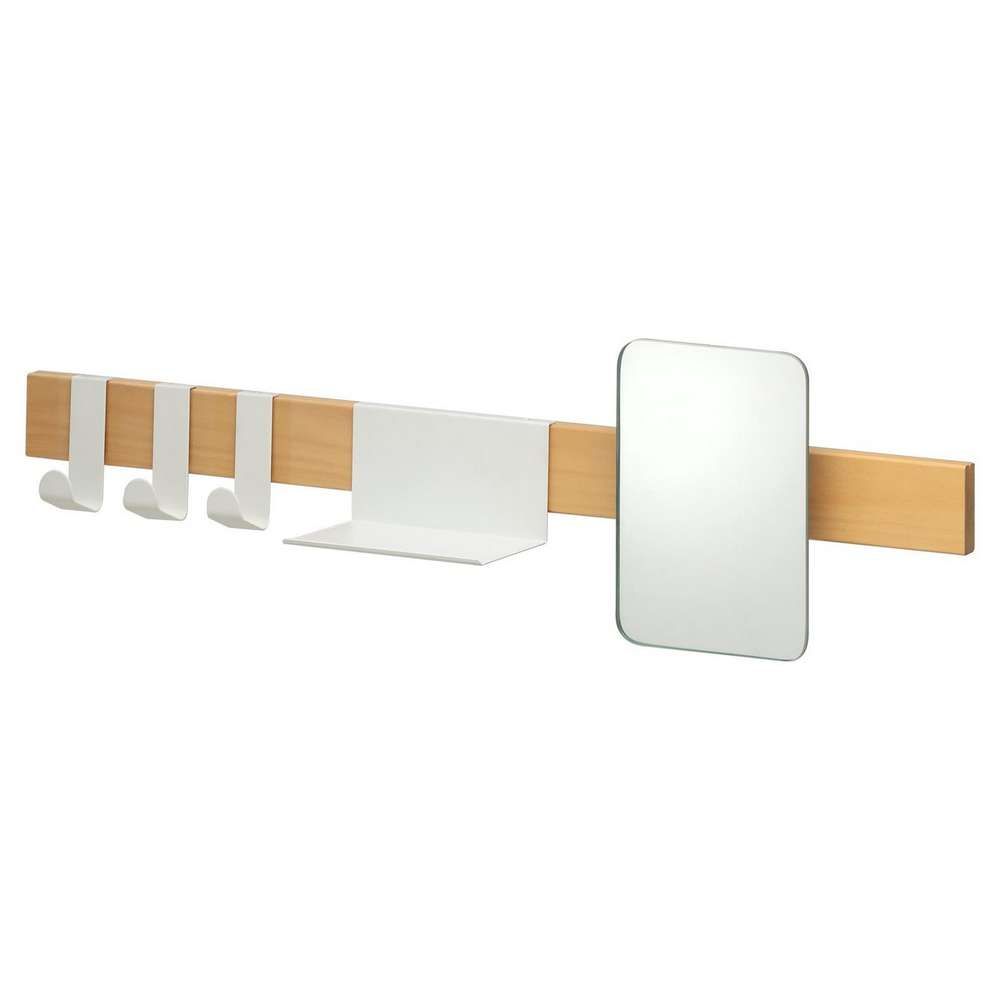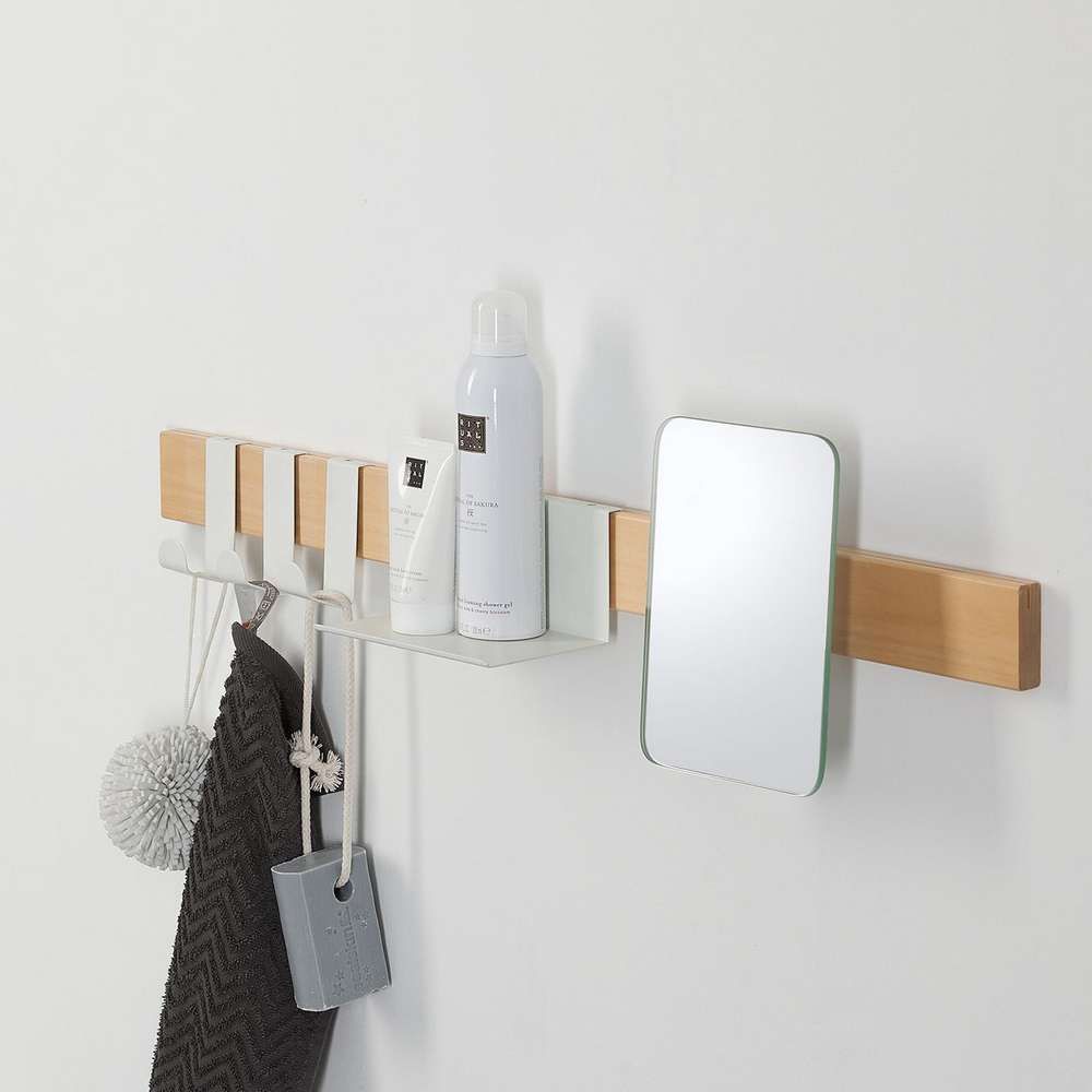 Τρία στη σειρά! Αυτό το πολυλειτουργικό ράφι αποτελείται από τρία άγκιστρα, έναν καθρέφτη και ένα ράφι. Τα εξαρτήματα μπορούν να συρταρωθούν στο ράφι σε οποιαδήποτε επιθυμητή θέση, επιτρέποντάς σας να το επιπλώσετε εξ ολοκλήρου όπως επιθυμείτε. Η αποθήκευση πραγμάτων δεν ήταν ποτέ τόσο διασκεδαστική και το αποτέλεσμα είναι εντυπωσιακό!