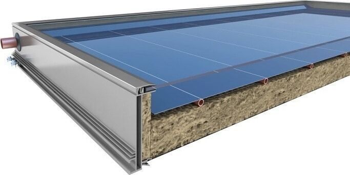 * Πλαίσιο συλλέκτη: Ανοδιωμένο αλουμίνιο διπλού τοιχώματος (πρεσσαριστό) με μόνωση πετροβάμβακα πάχους 40mm και πυκνότητας 50kg/m3