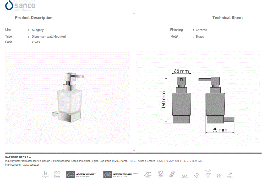Dispenser Αντλία Σαπουνιού Επιτοίχια Brushed Brass-Black Mat Sanco Allegory 25622-AB12-M116