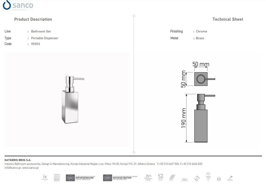 Ντισπένσερ Dispenser Επικαθήμενο 500ml Sanco Metallic Bathroom Set 90351-Α03-500Ειδική Τιμή 54,00 € Κανονική τιμή 60,00 € -