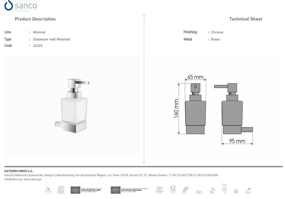 Dispenser Αντλία Υγρού Σαπουνιού Sanco Minimal Black Mat 24222-M116Ειδική Τιμή 72,00 € Κανονική τιμή 80,00 € -