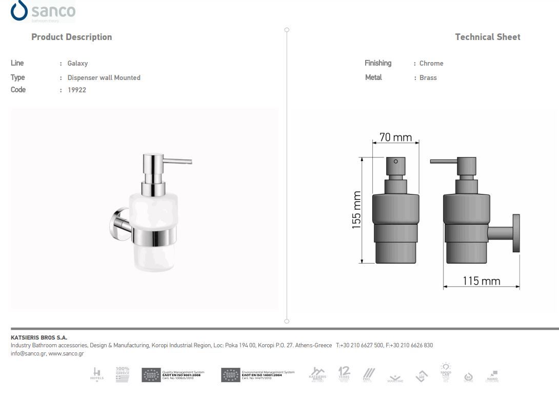 Dispenser Διανομέας Υγρού Σαπουνιού Επιτοίχιος Sanco Galaxy Chrome 19922-A03