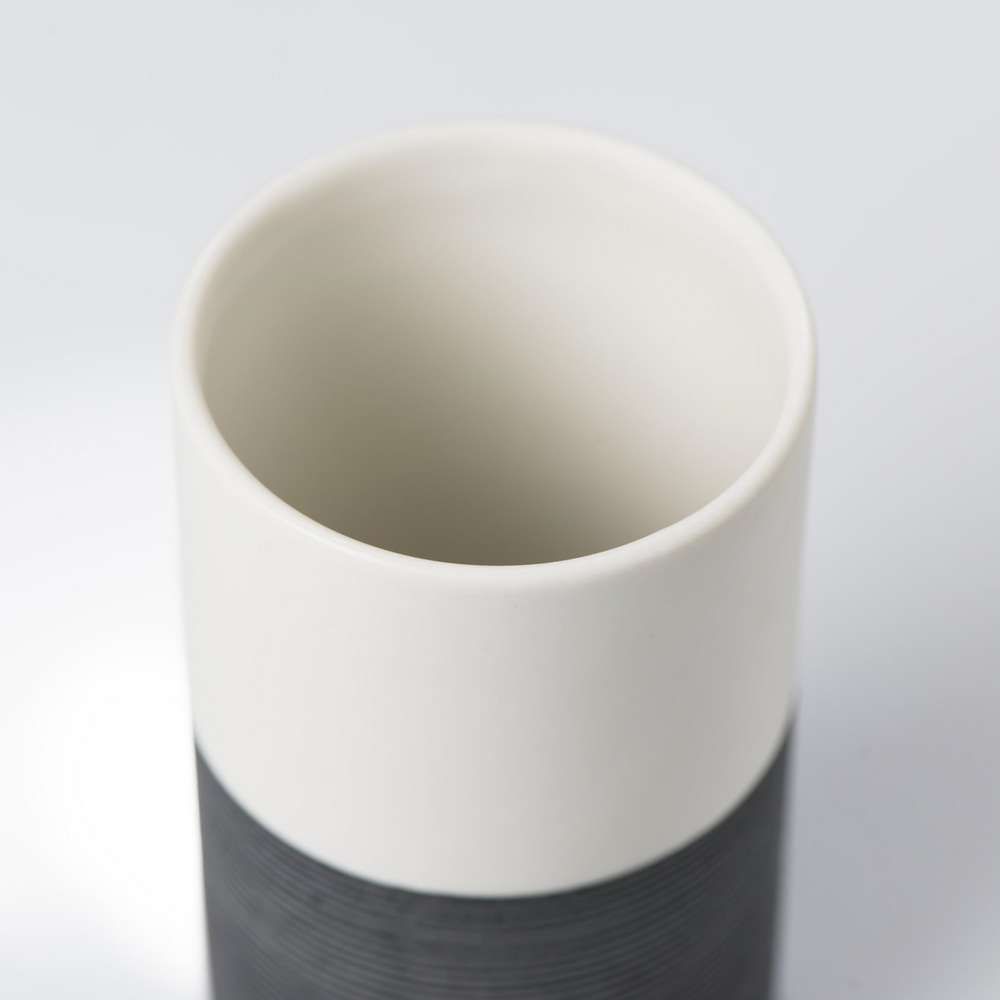 Αυτό το χειροποίητα βαμμένο ποτήρι Doppio της Sealskin είναι κατασκευασμένο από πορσελάνη. Η ραβδωτή επιφάνεια στο κάτω μέρος και το λείο φινίρισμα στο επάνω μέρος συνεργάζονται για να παρέχουν μια εκλεπτυσμένη ισορροπία χρώματος και υφής, ενώ παράλληλα προσφέρουν σταθερό κράτημα.