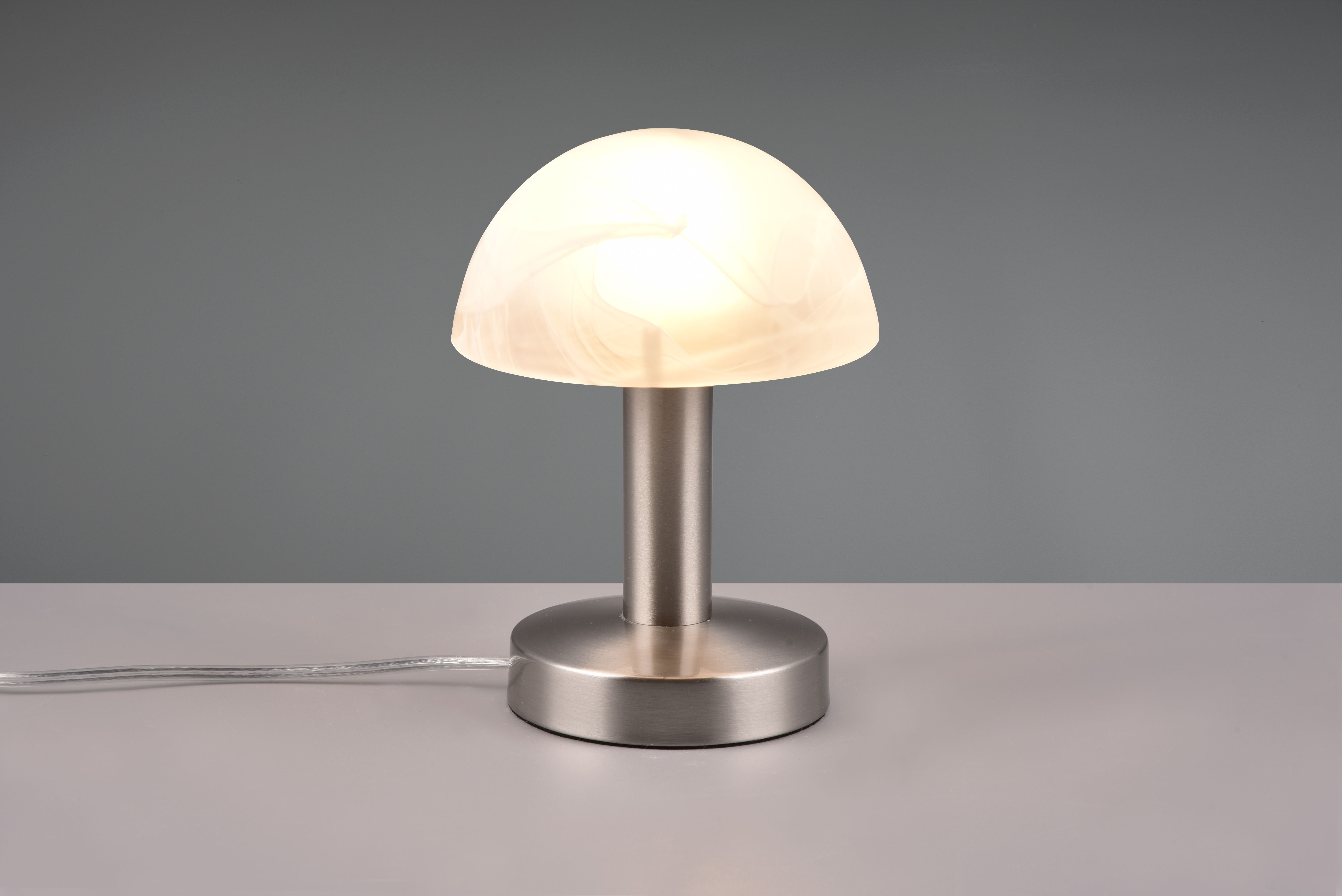 The table lamp in the FYNN II series has the shape of a classic table lamp. Its elegant colour scheme and touch function make it something special. A simple touch is enough to light up the lamp. The pleasant colouring in matt nickel with the simple white-washed glass underlines the elegant design of the light and creates a classic look. For energy-saving lighting, it is recommended to use an LED illuminant. These are an optimal alternative to conventional halogen lamps and stand for a high quality of light and energy savings of up to 80%. In addition, LED lamps help you benefit from a long service life, low heat generation and at the same time protect the environment.