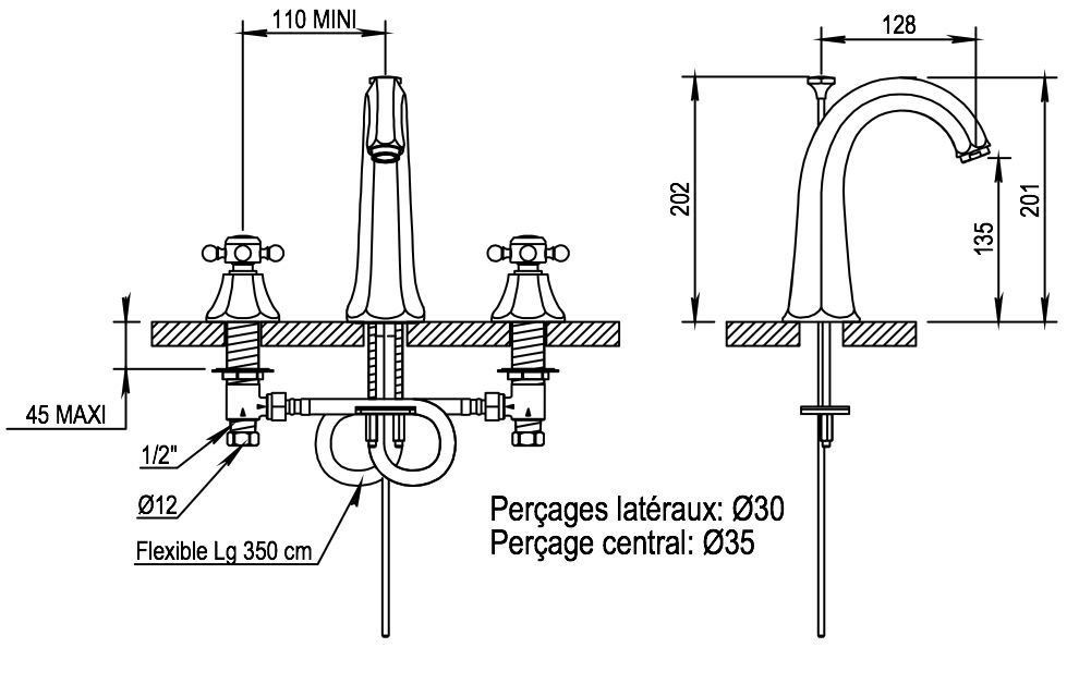 Περιγραφή: Μπαταρία Νιπτήρος με μανέτες 3 οπών Α/Β