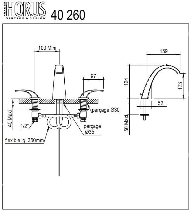 Horus Nouvelle Vague 40.260CH Μπαταρία Νιπτήρος 3 οπών Α/Β, Χρωμέ