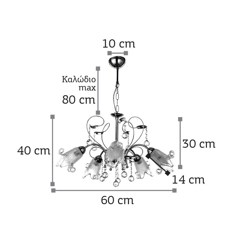 InLight Κρεμαστό φωτιστικό από χρώμιο μέταλλο κρύσταλλα και λευκό γυαλί 5XE14 D:60cm 5300-5-CHΕιδική Τιμή 139,50 € Κανονική τιμή 172,98 €