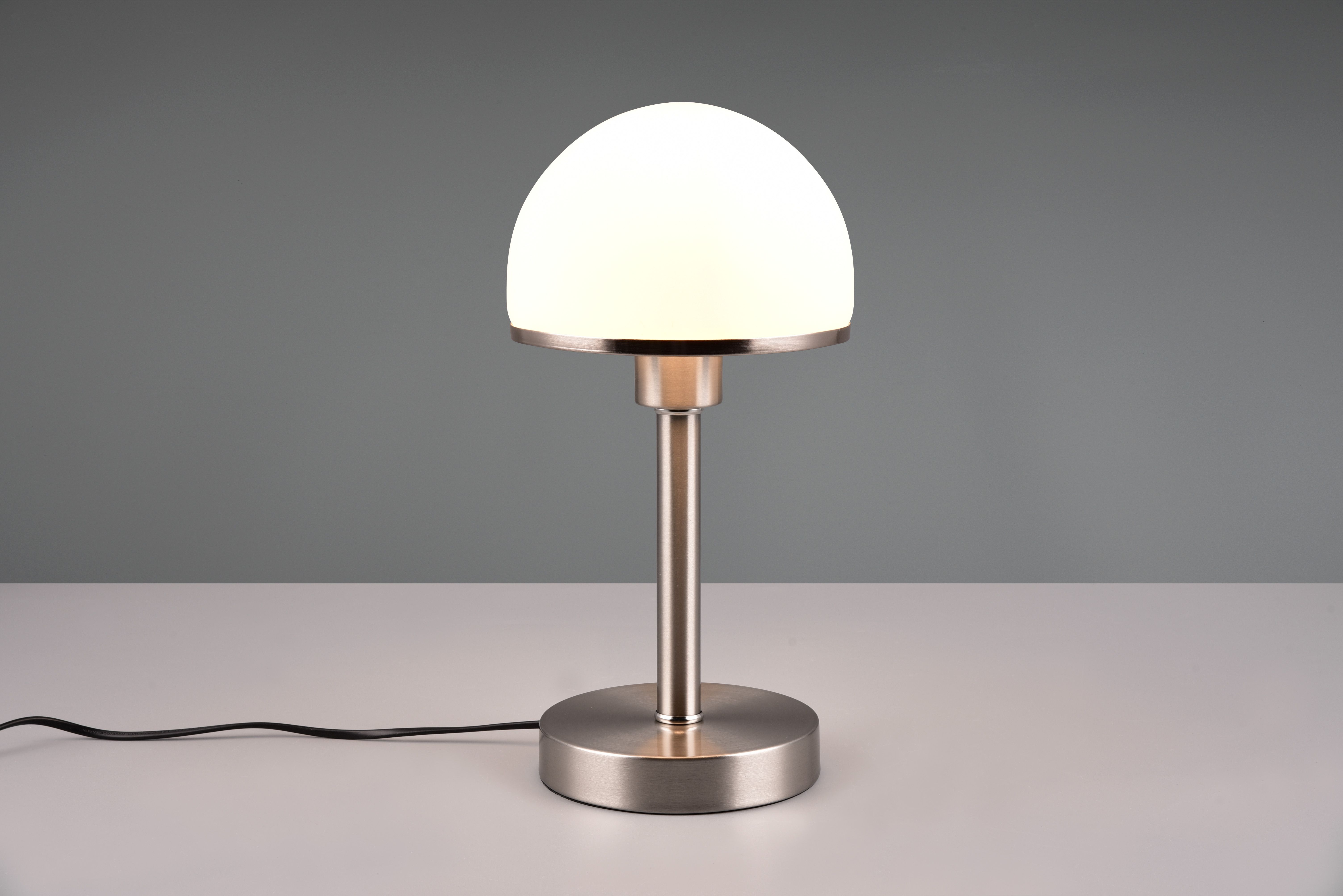 The JOOST II table lamp is a real eye-catcher in your living room. The lamp impresses with its simple appearance and practical touch function, allowing you to switch the lamp on and off with just one touch. The lamp base is matt nickel. The glass, which is white, is decorated with a matt nickel rim. For energy-saving lighting, it is recommended to use an LED illuminant. These are an optimal alternative to conventional halogen lamps and stand for a high quality of light and energy savings of up to 80%. In addition, LED lamps help you benefit from a long service life, low heat generation and at the same time protect the environment.