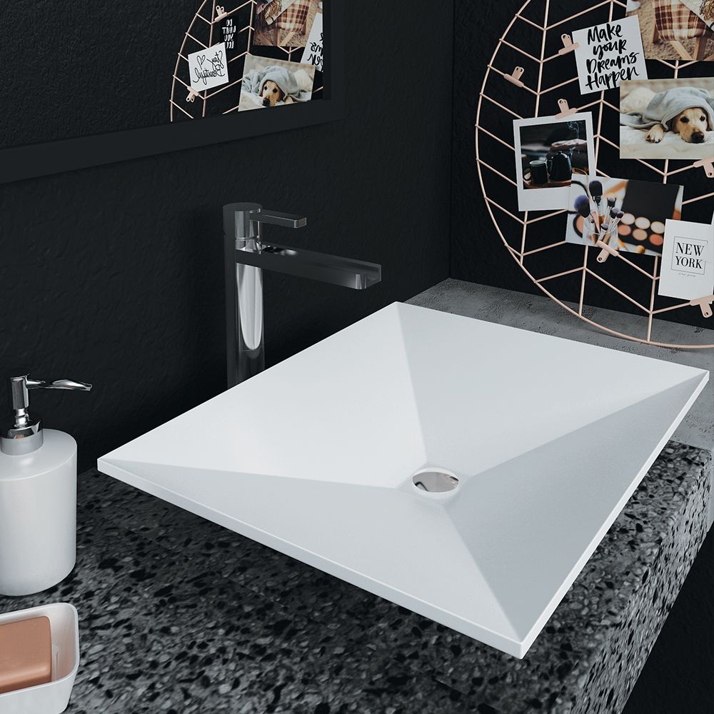 Νιπτήρας χωρίς υπερχείλιση με λευκή, γυαλιστερή επικάλυψη κατασκευασμένος από Cast Marble-Gelcoat. Διαστάσεις νιπτήρα 50.6Χ40.6 εκατοστά, με ύψος νιπτήρα 11 εκατοστά. Βάθος νιπτήρα 9 εκατοστά.