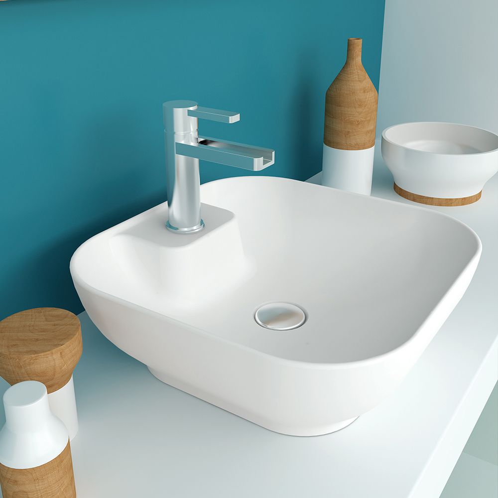 Η εταιρεία Olympia υπογράφει μια σειρά ειδών υγιεινής κορυφαίου σχεδιασμού, υψηλής λειτουργικής απόδοσης τόσο για οικιακή, όσο και για επαγγελματική χρήση. Ο νιπτήρας Trend Square 01 είναι ένας τετράγωνος, μοντέρνος, επικαθήμενος νιπτήρας μπάνιου από πορσελάνη με οπή για τοποθέτηση βρύσης. Μπορεί να συνοδευτεί από κεραμική βαλβίδα, κατόπιν επιλογής.