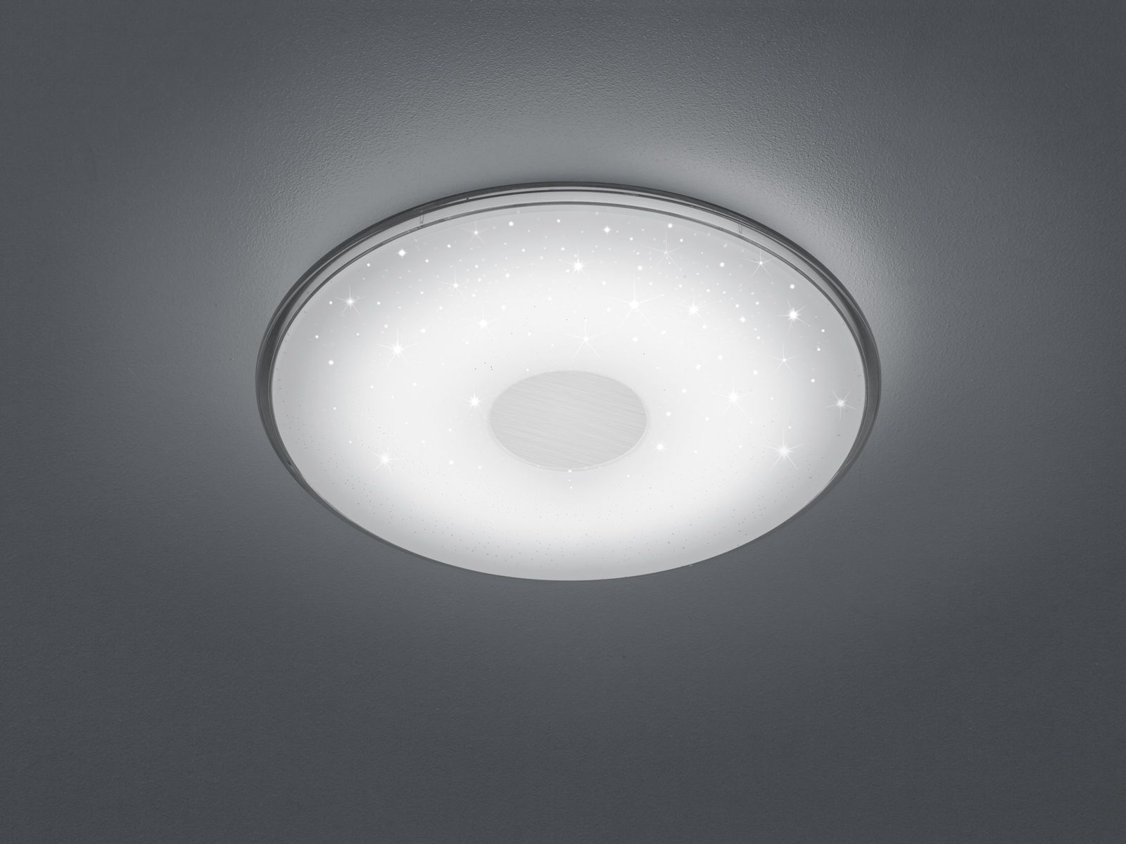 The SHOGUN ceiling light - a modern and simple light that invites you to dream thanks to its starry sky effect. It also impresses with its many different functions, which can be controlled using the remote control included in the scope of delivery. You have the option of dimming the light continuously, adjusting the light colour or switching on the night light function. It is ideal for illuminating the children's room. It has a diameter of 42.5 cm. The design in the colour white invites you to combine it with other colours or can be wonderfully integrated into a modern interior. In addition, the luminaire features modern LED technology, which is characterised by high light quality and energy efficiency. Compared to conventional halogen lamps, up to 80% of energy costs can be saved. In addition, LED light sources have a long service life, produce less heat and protect the environment.